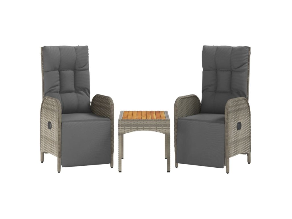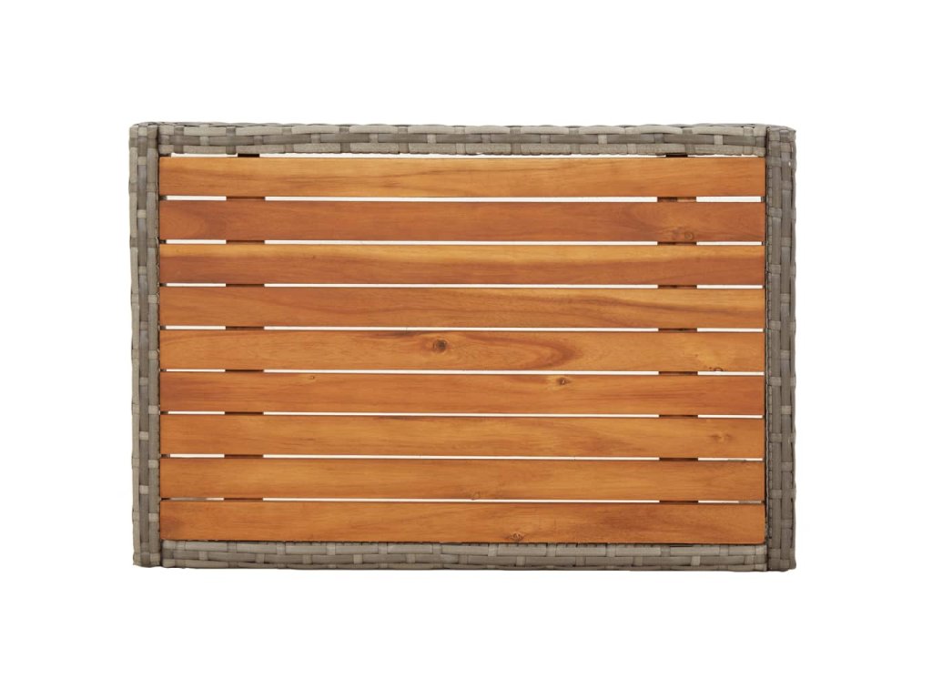 - Materiál: masivní akáciové dřevo s olejovou povrchovou úpravou, PE ratan, práškově lakovaná ocel