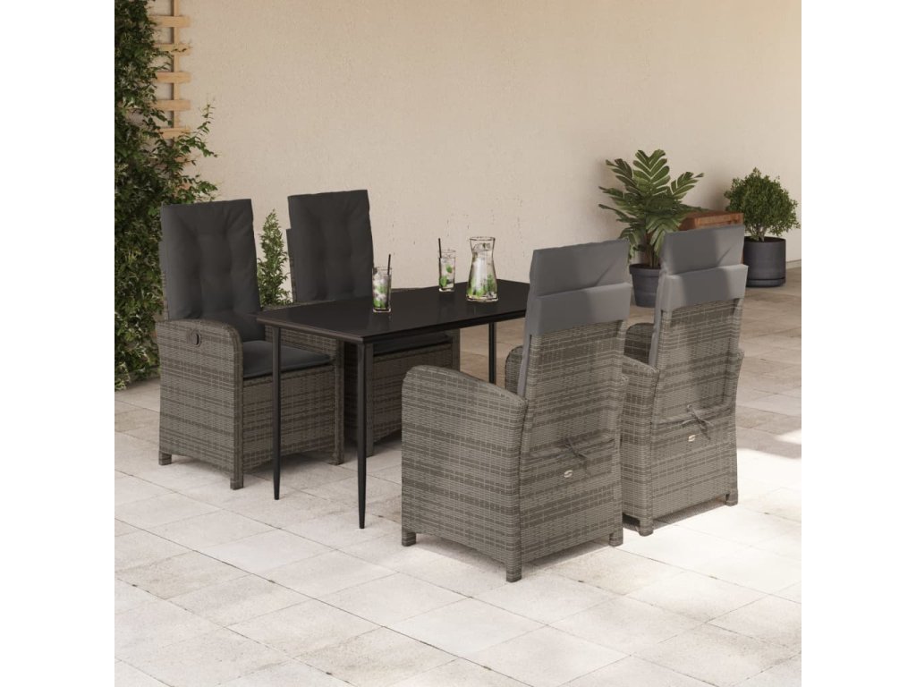 5dílný zahradní jídelní set s poduškami šedý polyratan 3212353