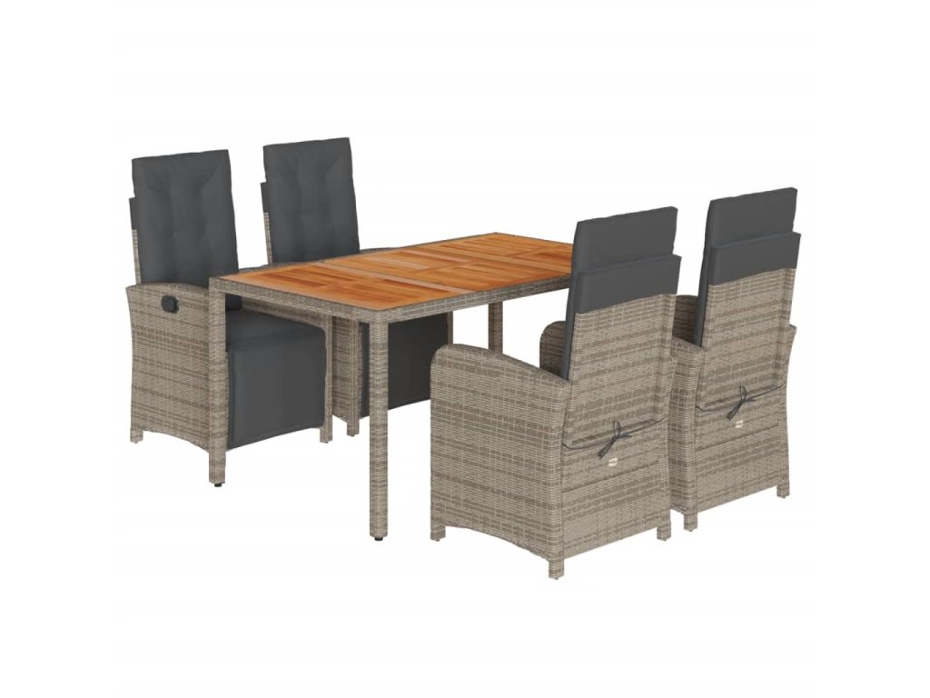 5dílný zahradní jídelní set s poduškami šedý polyratan 3212482