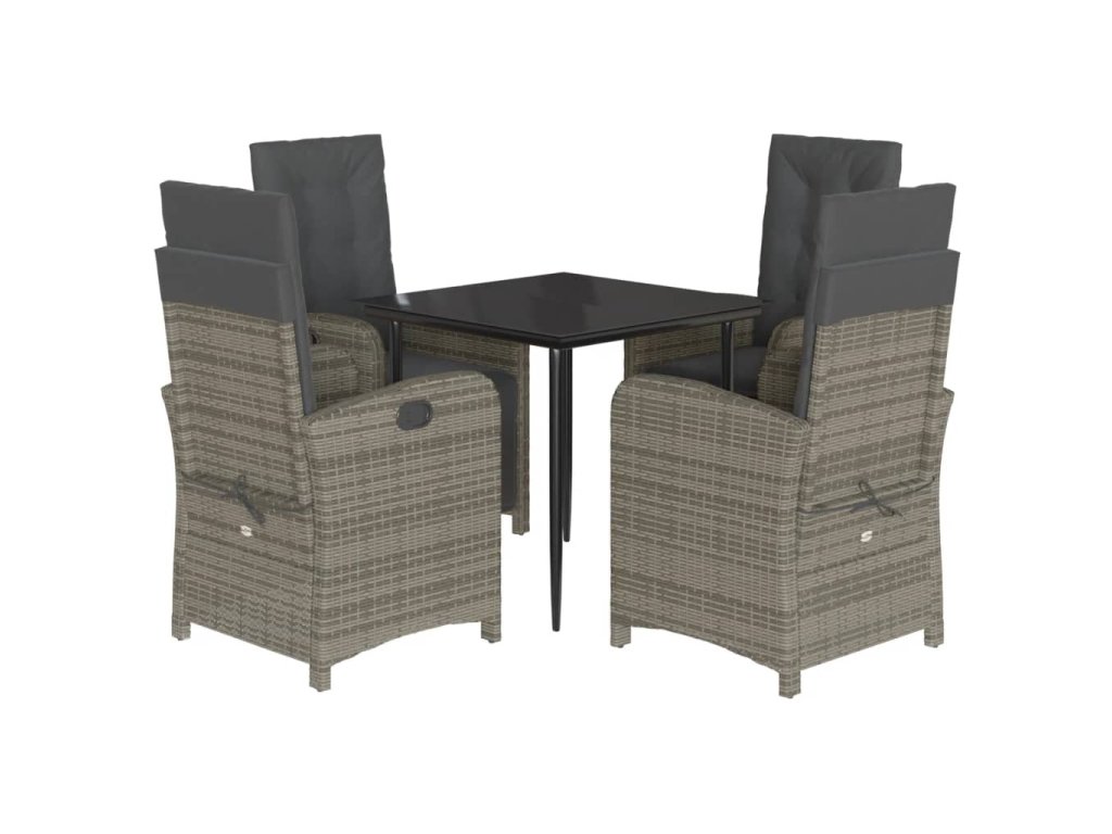 5dílný zahradní jídelní set s poduškami šedý polyratan 3212557