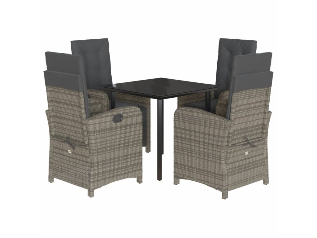 5dílný zahradní jídelní set s poduškami šedý polyratan 3212564