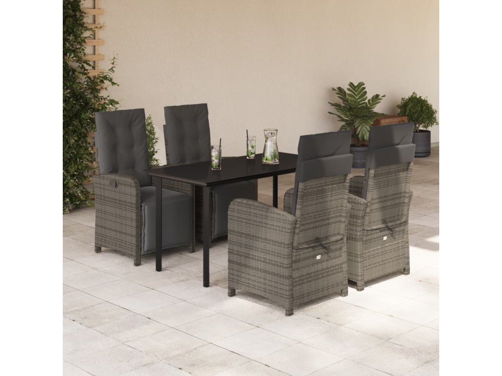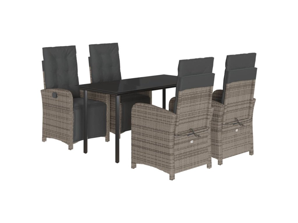 5dílný zahradní jídelní set s poduškami šedý polyratan 3212565