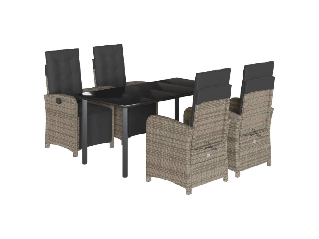 5dílný zahradní jídelní set s poduškami šedý polyratan 3212566