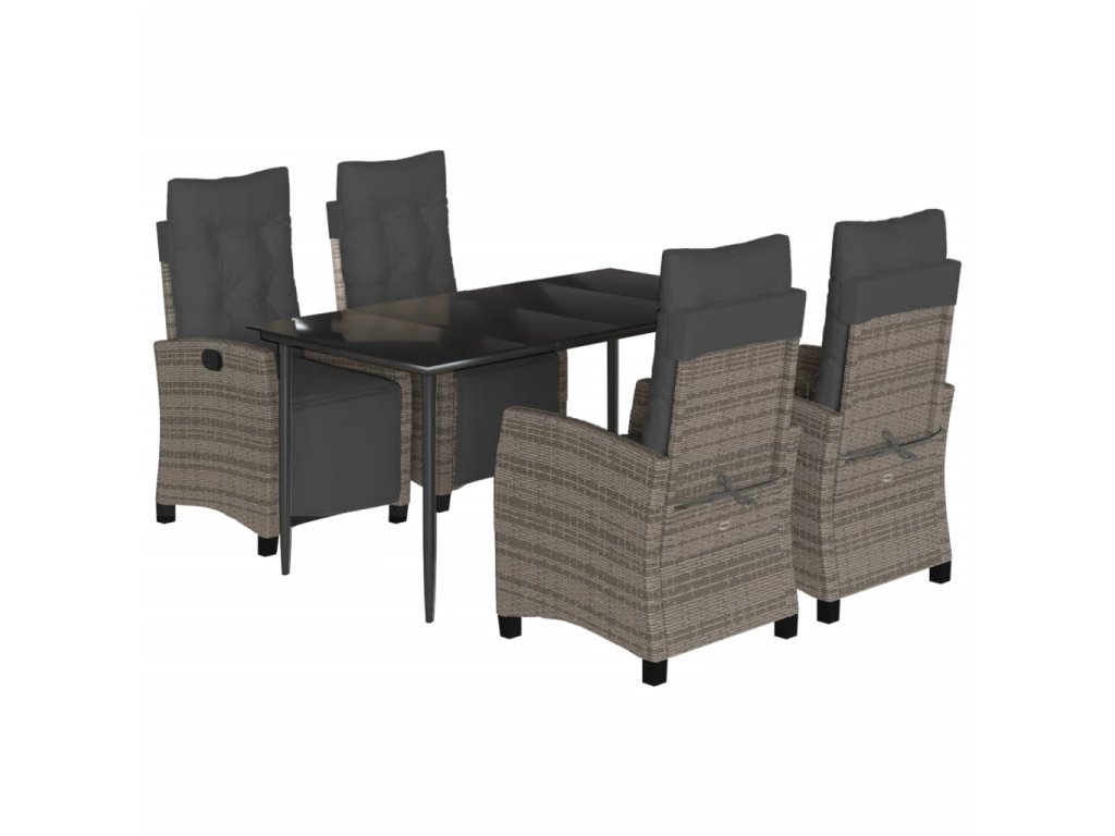 5dílný zahradní jídelní set s poduškami šedý polyratan 3212991
