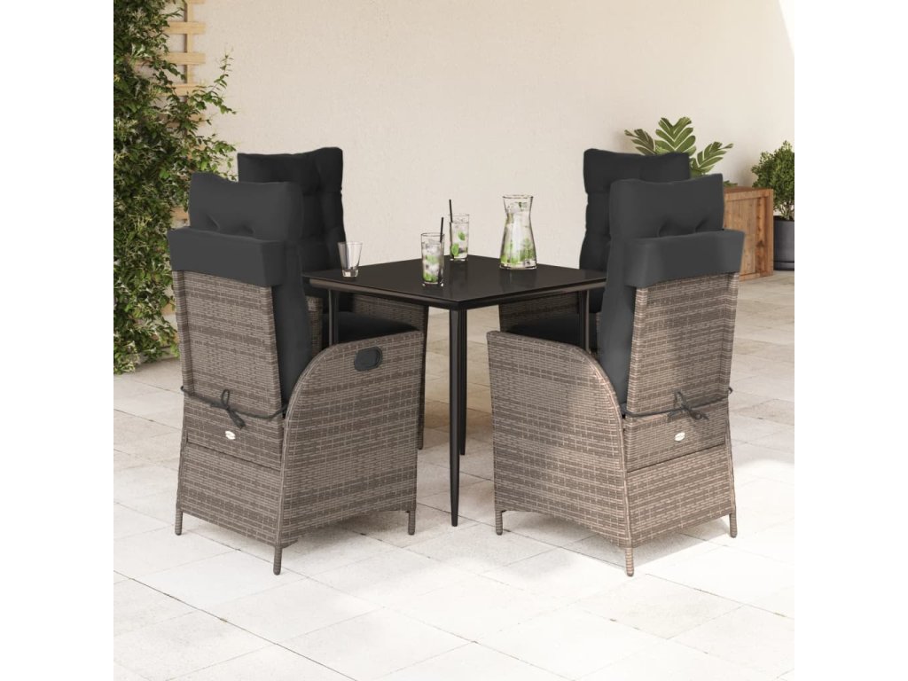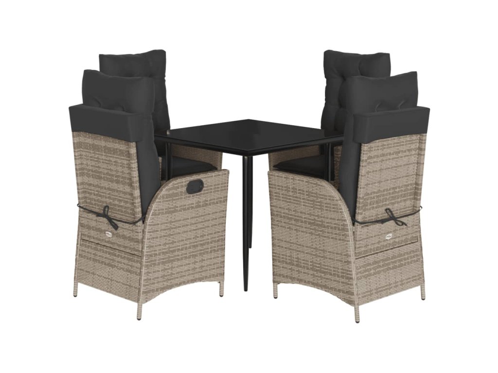 5dílný zahradní jídelní set s poduškami šedý polyratan 3213215