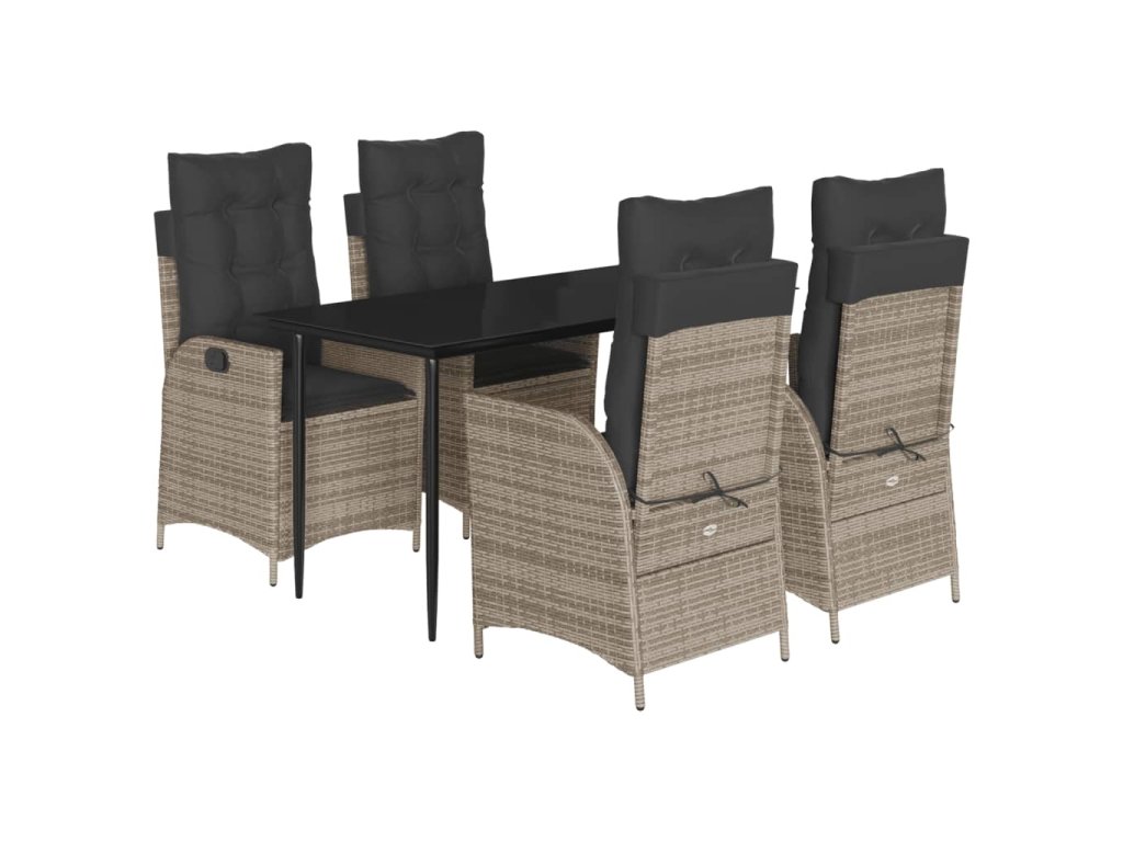 5dílný zahradní jídelní set s poduškami šedý polyratan 3213217