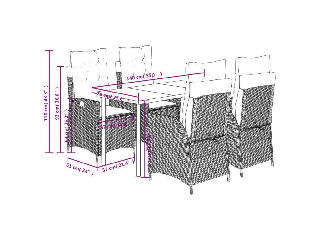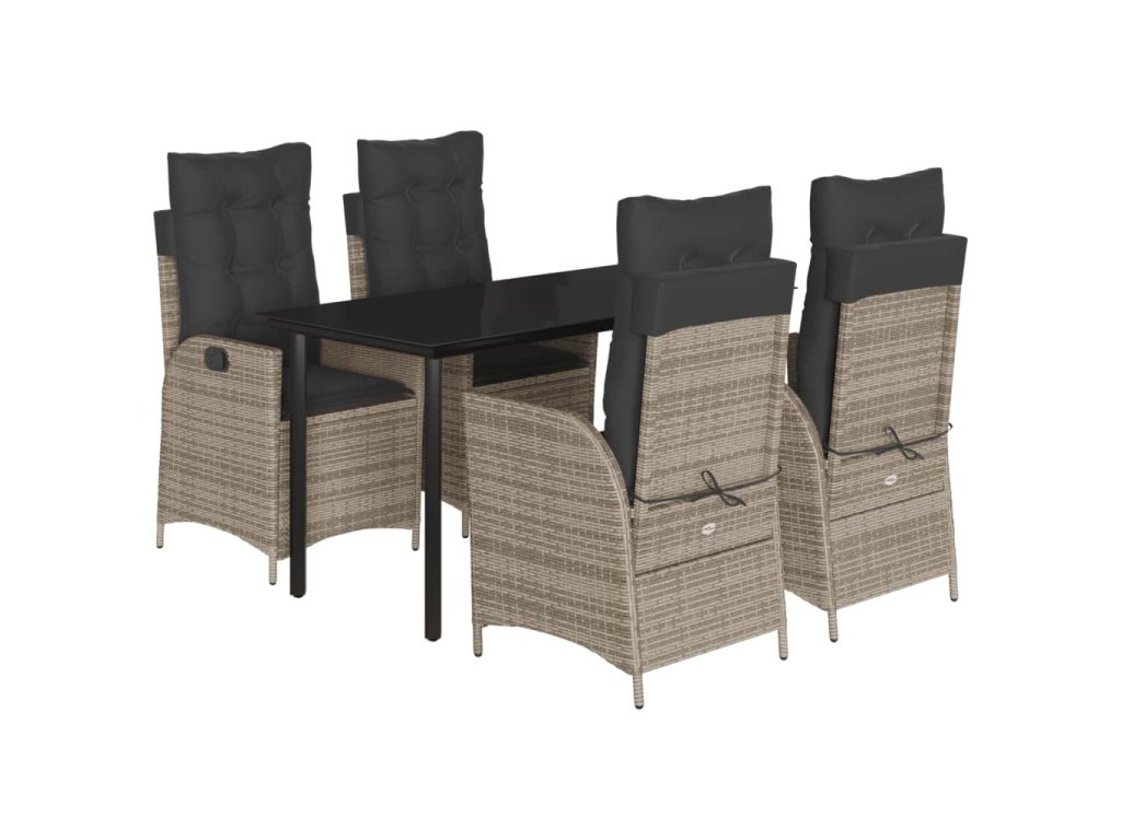 5dílný zahradní jídelní set s poduškami šedý polyratan 3213227
