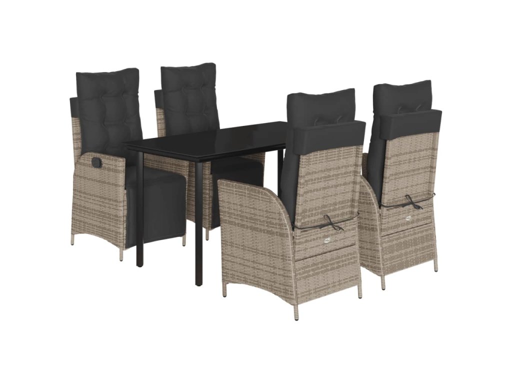 5dílný zahradní jídelní set s poduškami šedý polyratan 3213429