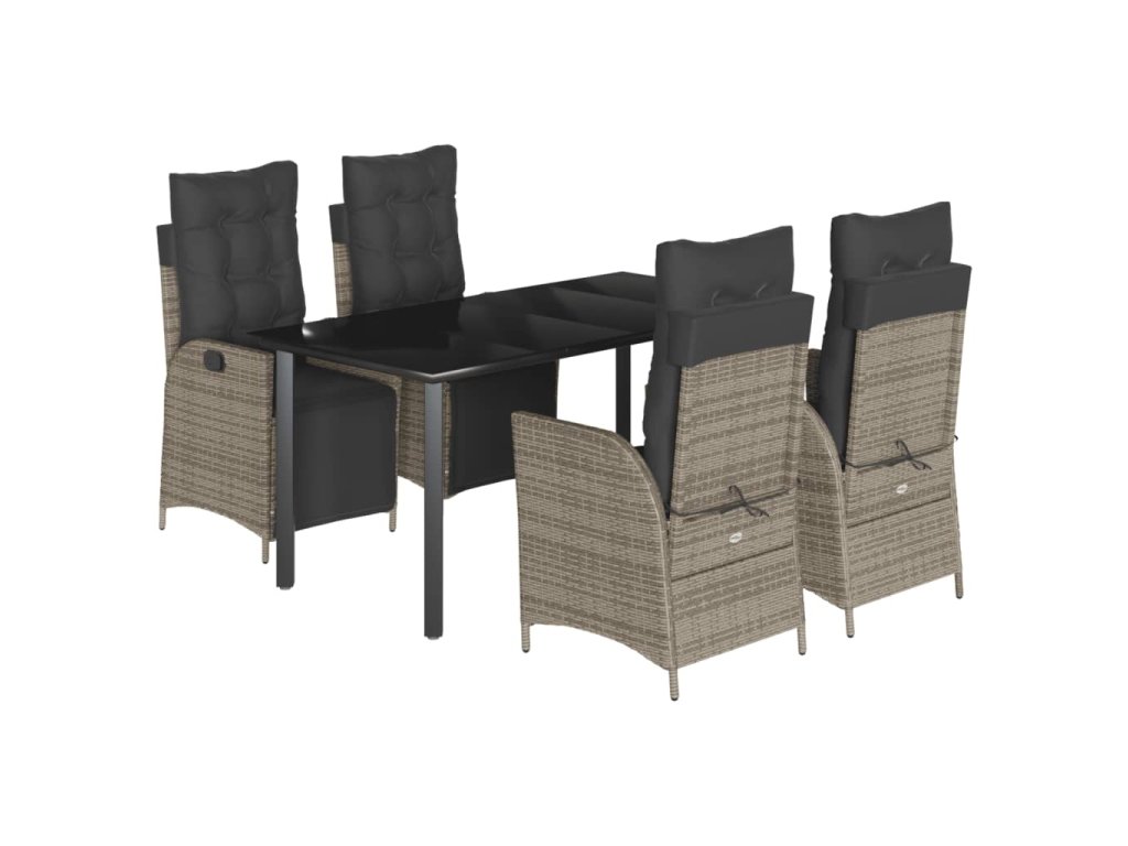 5dílný zahradní jídelní set s poduškami šedý polyratan 3213430