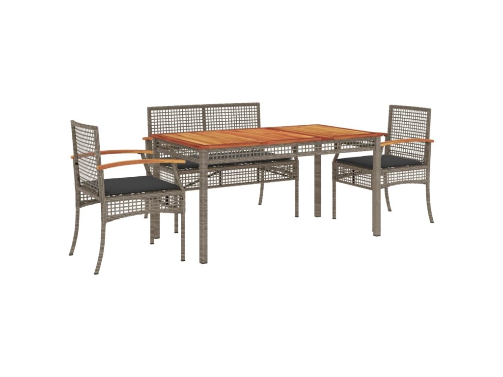- Materiál: PE ratan, práškově lakovaná ocel, masivní akáciové dřevo s olejovou povrchovou úpravou