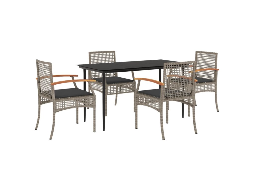 5dílný zahradní jídelní set s poduškami šedý polyratan 3213612