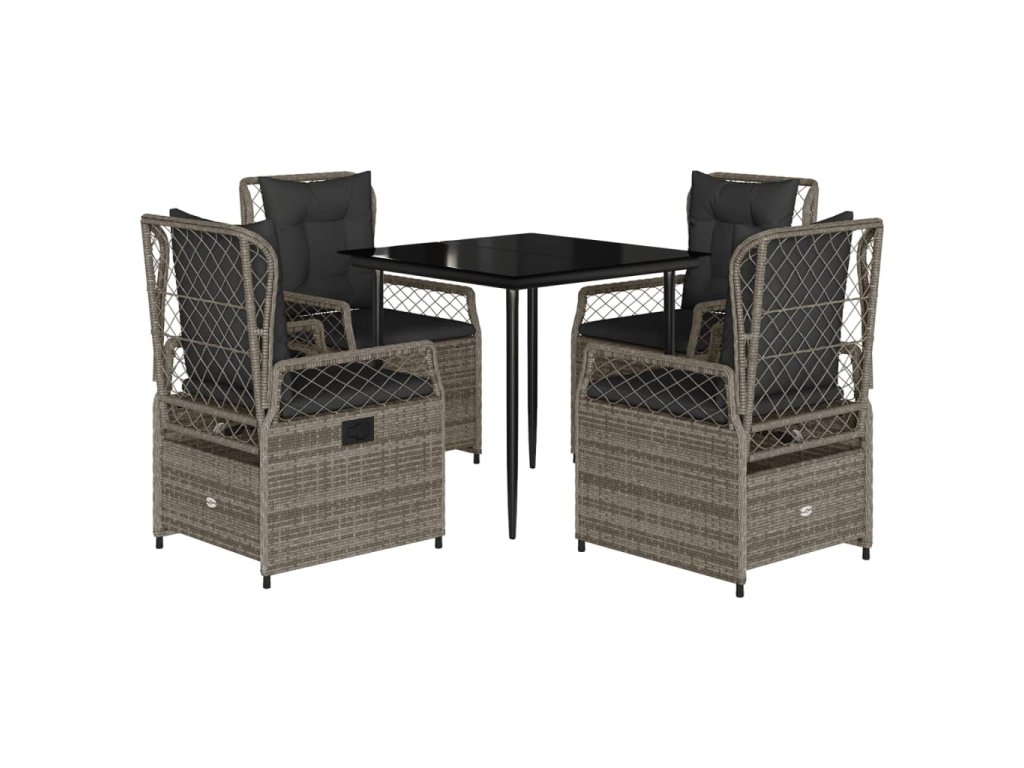 5dílný zahradní jídelní set s poduškami šedý polyratan 3262986