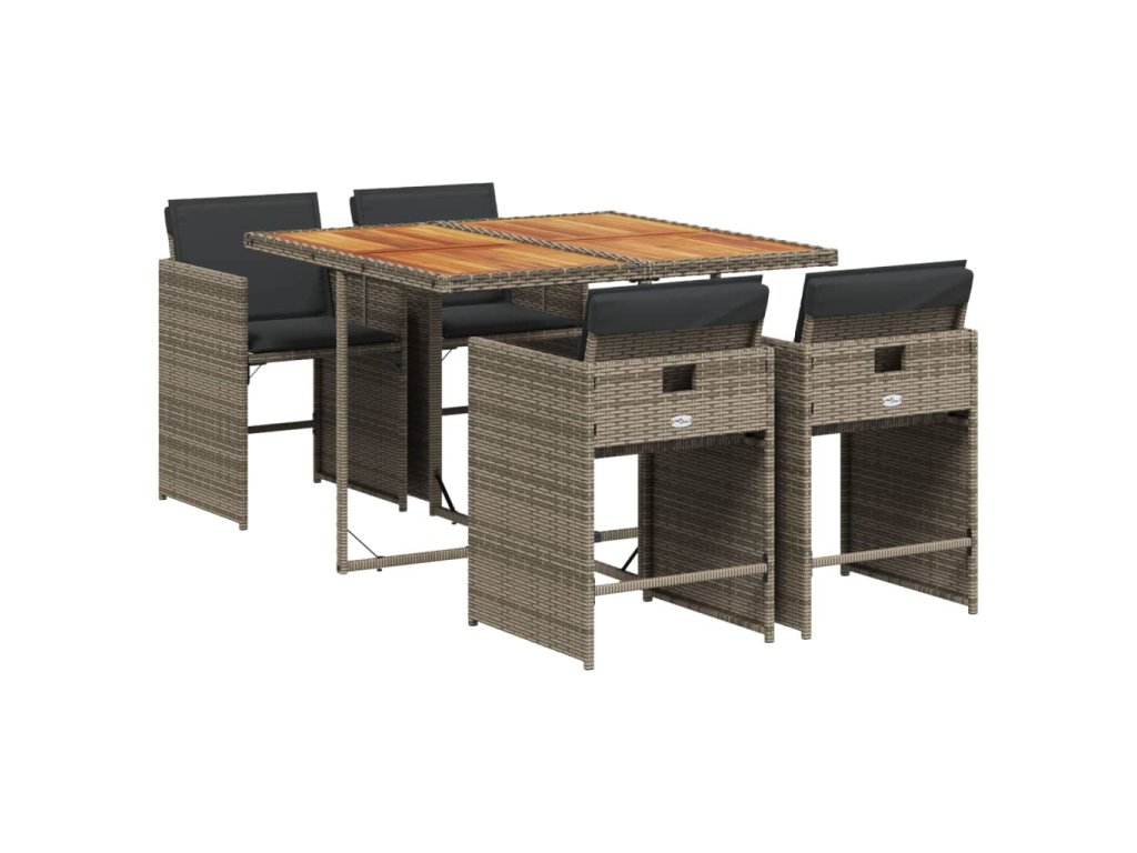 5dílný zahradní jídelní set s poduškami šedý polyratan 3277849
