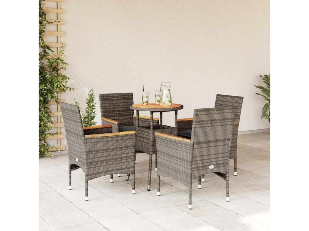 5dílný zahradní jídelní set s poduškami šedý polyratan a akácie 3278720