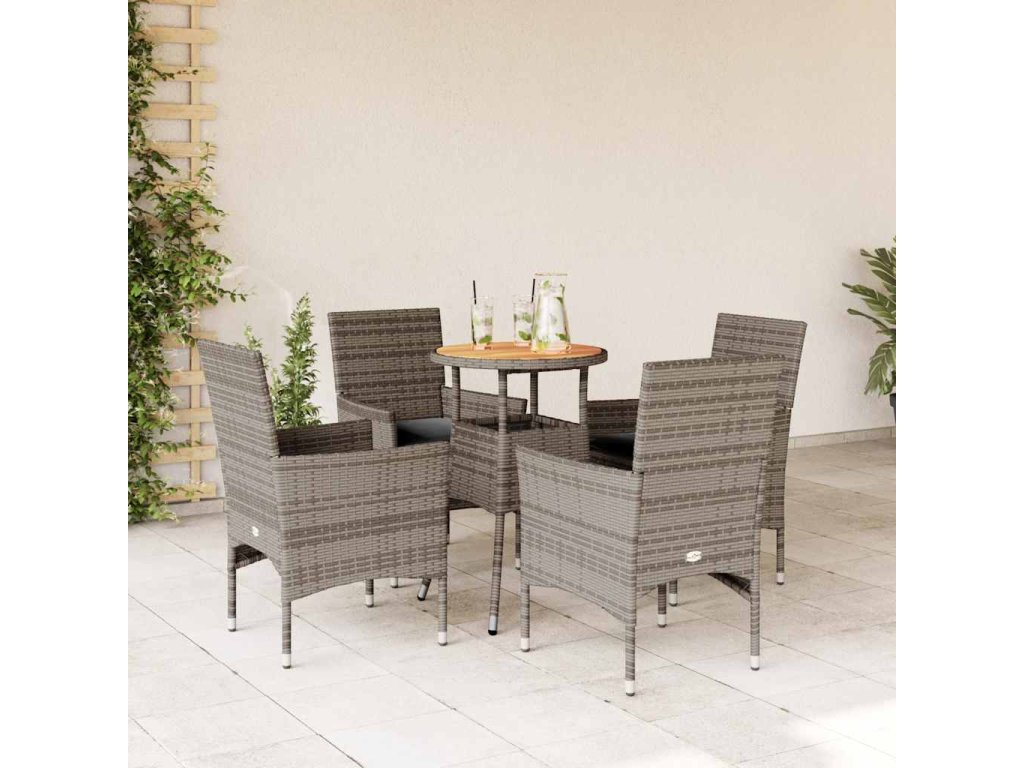 5dílný zahradní jídelní set s poduškami šedý polyratan a akácie 3278732