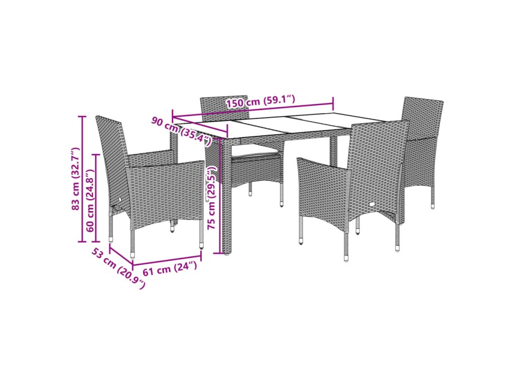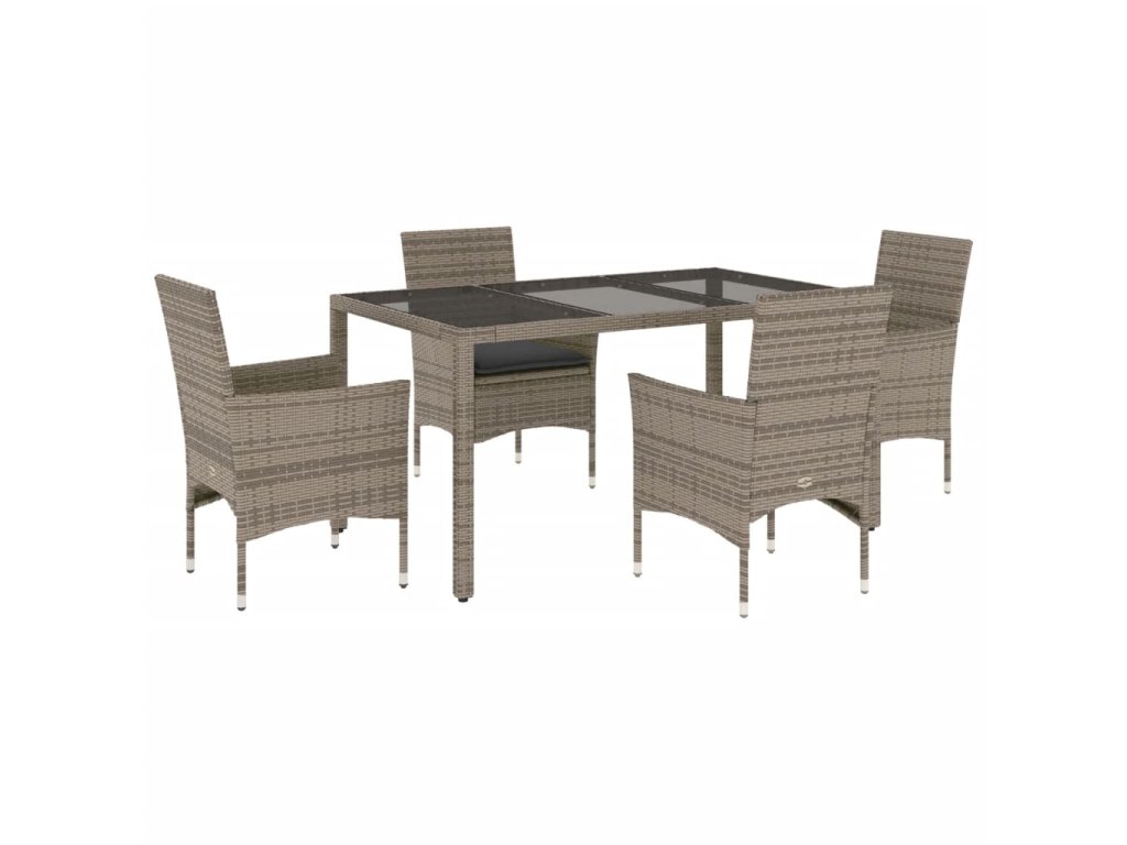 5dílný zahradní jídelní set s poduškami šedý polyratan a sklo 3278557