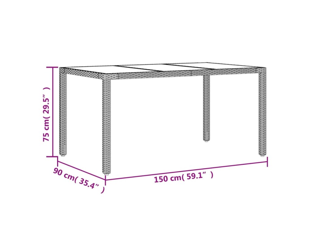 - Skleněná deska stolu: Deska venkovního stolu je zhotovena ze silného a odolného tvrzeného skla, takže ji snadno očistíte vlhkým hadříkem a zároveň do vašeho venkovního prostoru vnese nádech elegance.