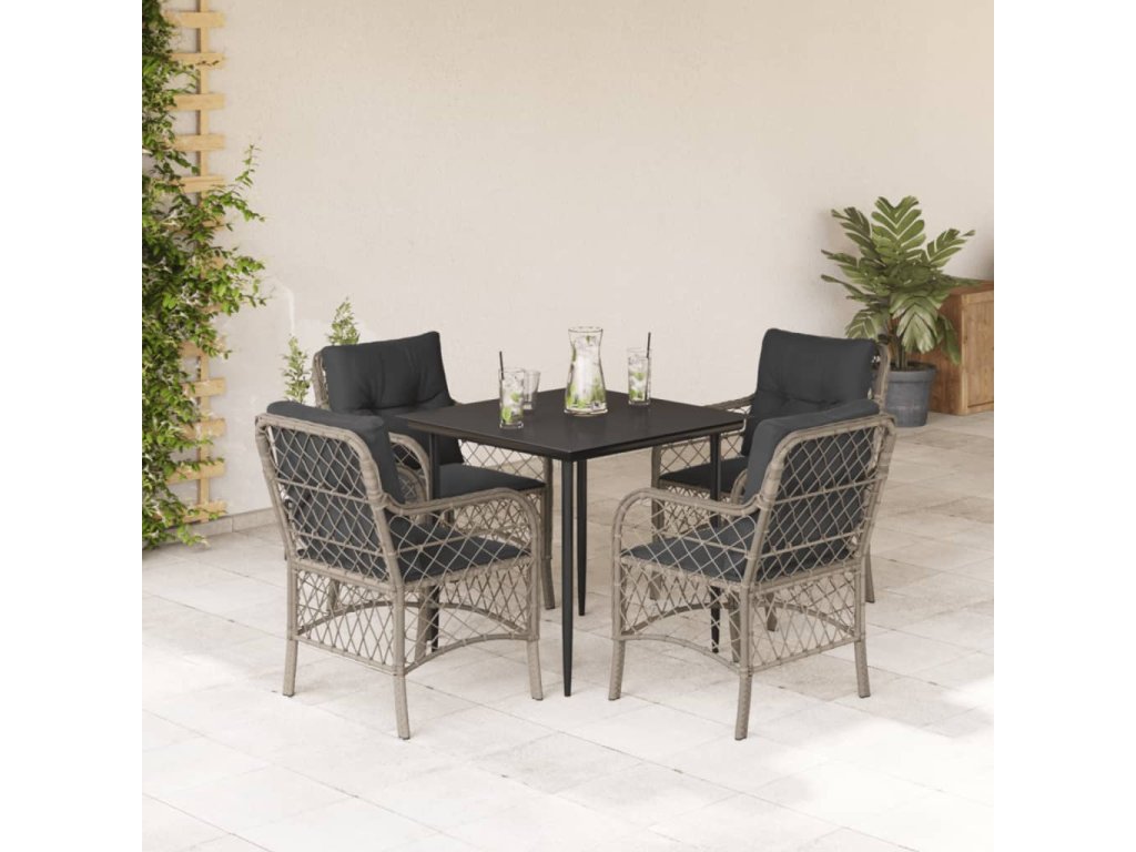 5dílný zahradní jídelní set s poduškami světle šedý polyratan 3212167