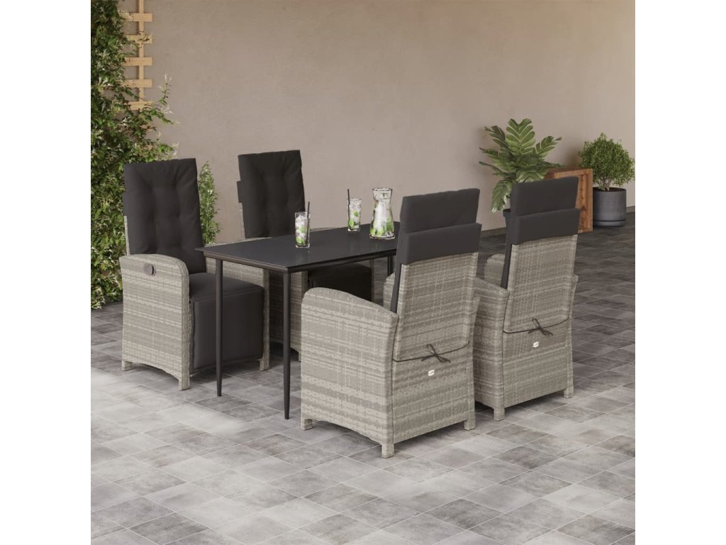 5dílný zahradní jídelní set s poduškami světle šedý polyratan 3212600