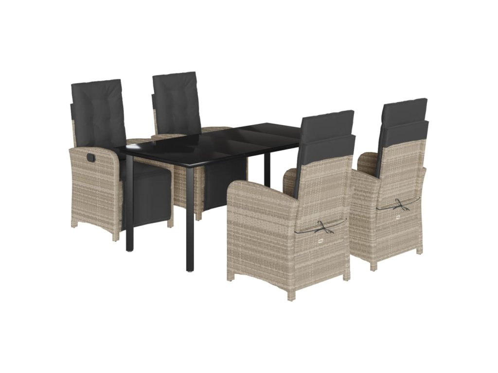 5dílný zahradní jídelní set s poduškami světle šedý polyratan 3212608