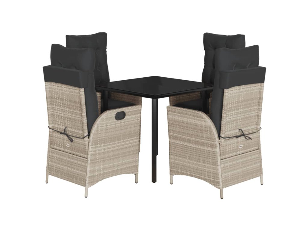 5dílný zahradní jídelní set s poduškami světle šedý polyratan 3213285