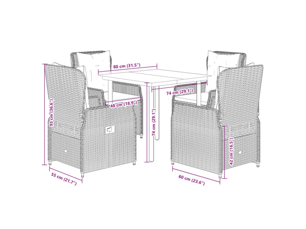 - Rozměry: 80 x 80 x 74 cm (D x Š x V)