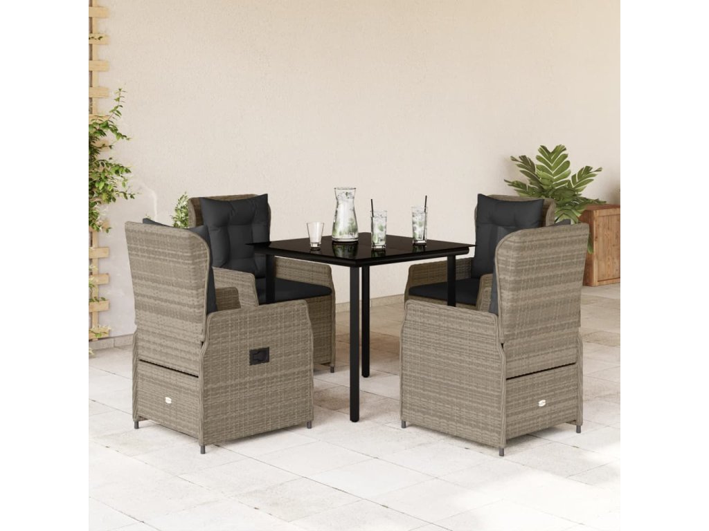5dílný zahradní jídelní set s poduškami světle šedý polyratan 3262904
