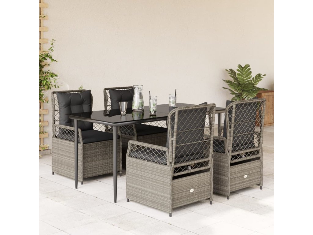 5dílný zahradní jídelní set s poduškami světle šedý polyratan 3263030