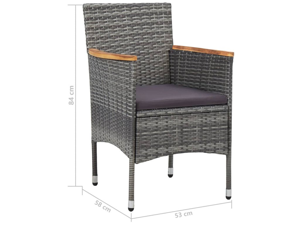5dílný zahradní jídelní set šedý polyratan a akáciové dřevo 3058325