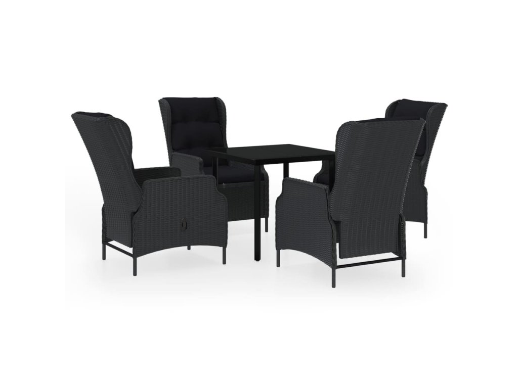 Praktický zahradní jídelní set má ocelový rám, takže je pevný a má dlouhou životnost. Polohovací židle jsou vyrobené z voděodolného PE ratanu, který nevyžaduje žádnou údržbu, hodí se proto skvěle k venkovnímu použití. Hustě polstrované podušky vám při stolování poskytnou maximální pohodlí. Potah podušky je opatřený zipem, lze ho tedy stáhnout a vyprat. Pomocí mechanismu s plynovým pístem si navíc snadno přizpůsobíte opěradlo křesla podle vlastních potřeb. Stisknutím tlačítka na boku ho sklopíte do té nejpohodlnější pozice. Hladká skleněná stolní deska, kterou jednoduše očistíte vlhkým hadříkem, je ideální k podávání jídla a pití nebo k vystavování různých dekorativních předmětů.