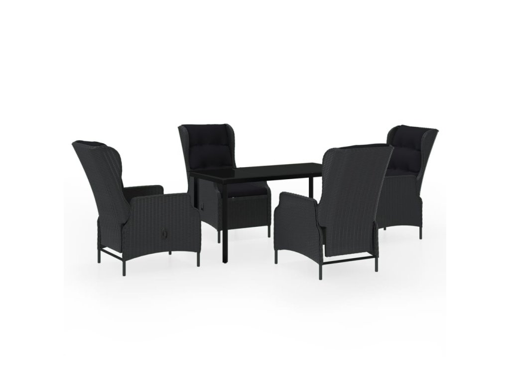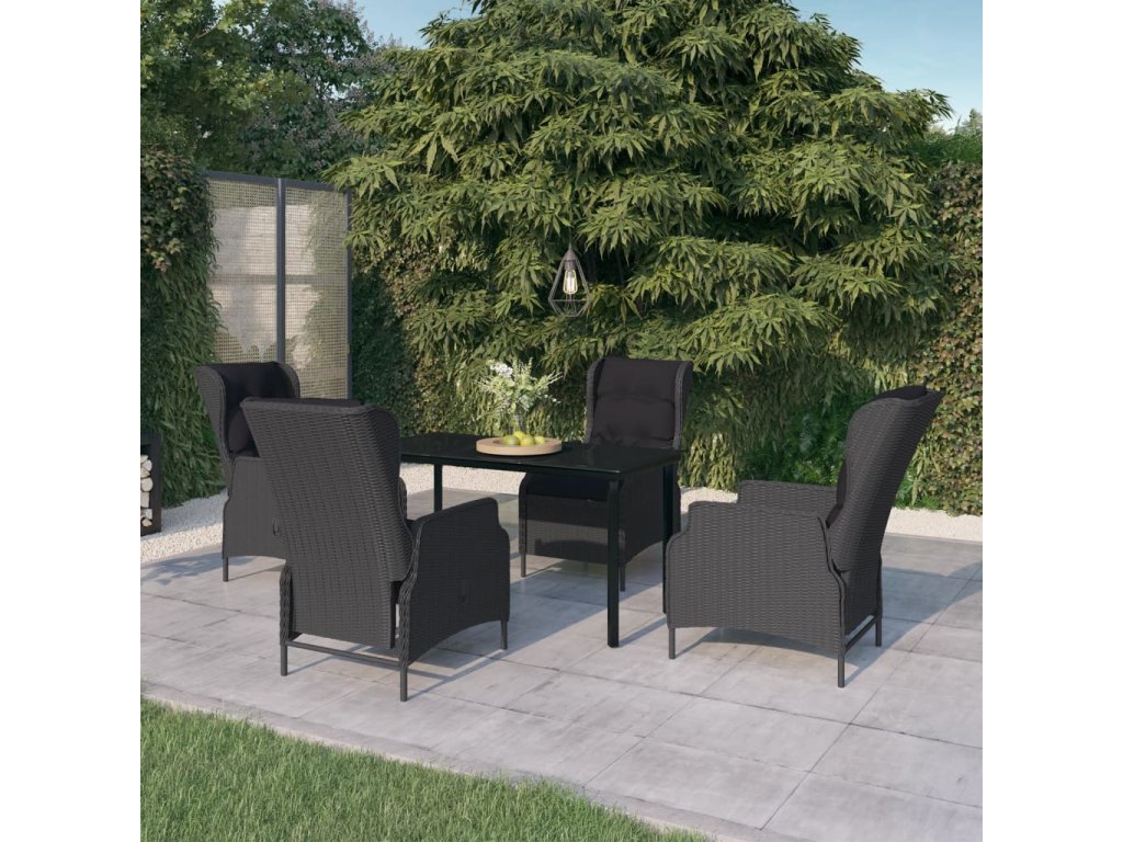 Praktický zahradní jídelní set má ocelový rám, takže je pevný a má dlouhou životnost. Polohovací židle jsou vyrobené z voděodolného PE ratanu, který nevyžaduje žádnou údržbu, hodí se proto skvěle k venkovnímu použití. Hustě polstrované podušky vám při stolování poskytnou maximální pohodlí. Potah podušky je opatřený zipem, lze ho tedy stáhnout a vyprat. Pomocí mechanismu s plynovým pístem si navíc snadno přizpůsobíte opěradlo křesla podle vlastních potřeb. Stisknutím tlačítka na boku ho sklopíte do té nejpohodlnější pozice. Hladká skleněná stolní deska, kterou jednoduše očistíte vlhkým hadříkem, je ideální k podávání jídla a pití nebo k vystavování různých dekorativních předmětů.