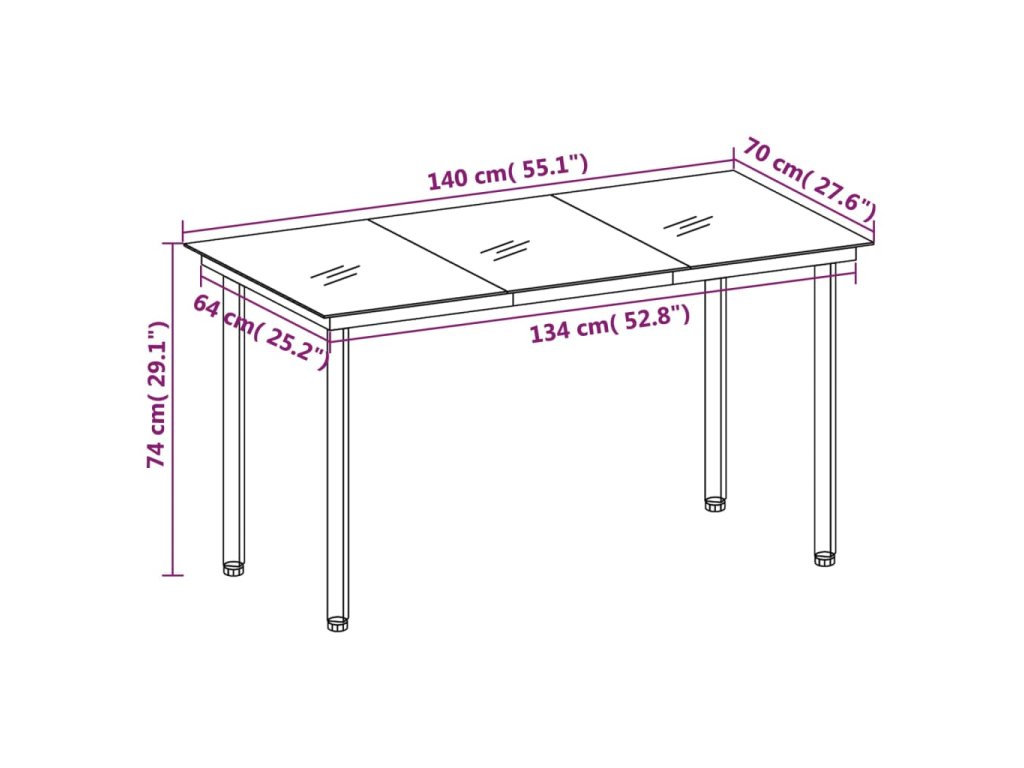 - Rozměry: 140 x 70 x 74 cm (D x Š x V)