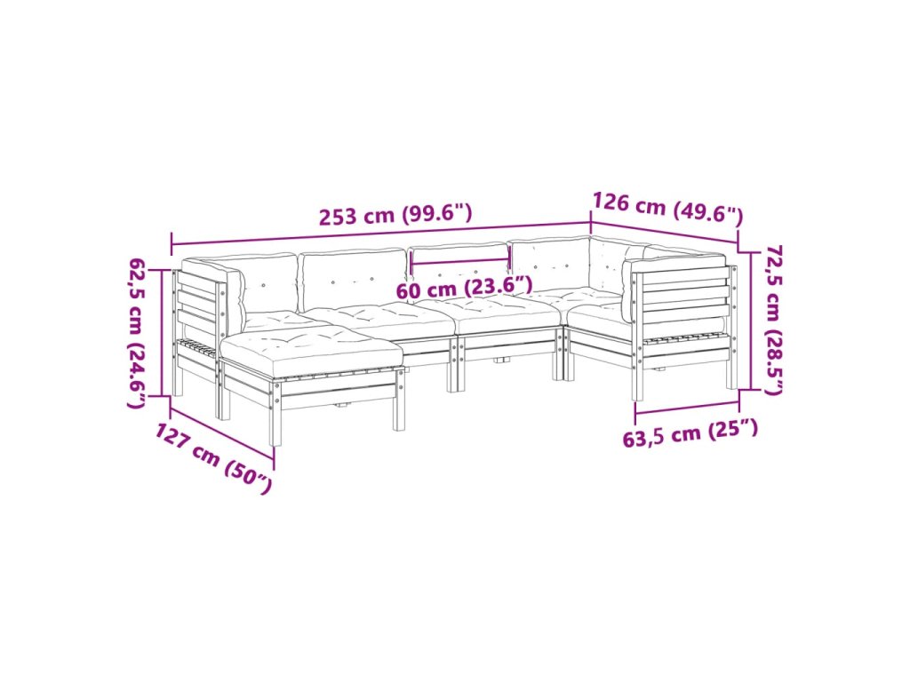 6dílná zahradní sedací souprava a podušky impregnovaná borovice 3299529