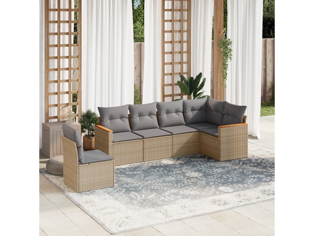 6dílná zahradní sedací souprava a podušky mix béžové polyratan 3226017