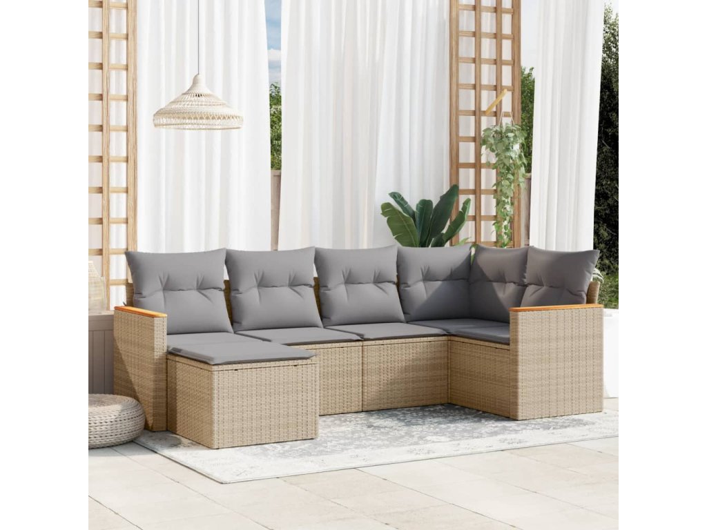6dílná zahradní sedací souprava a podušky mix béžové polyratan 3226178