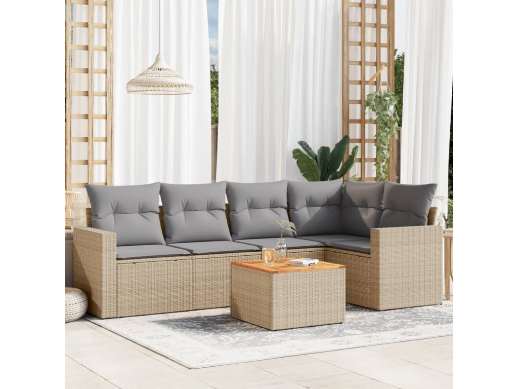 6dílná zahradní sedací souprava a podušky mix béžové polyratan 3256444