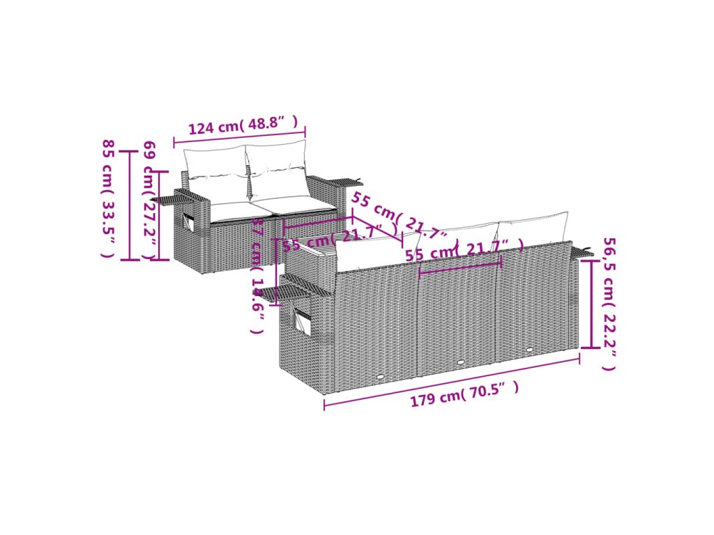 6dílná zahradní sedací souprava a podušky mix béžové polyratan 3256780