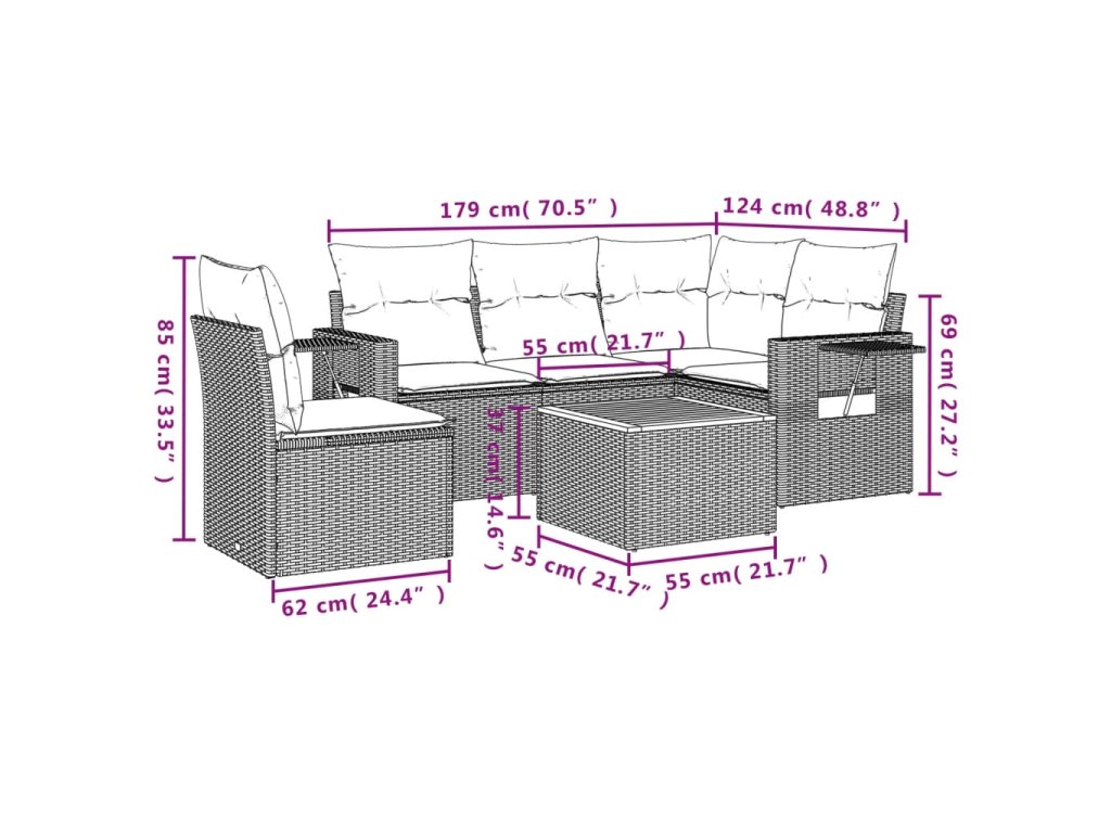 Tato zahradní sedací souprava je dokonalým doplňkem vaší zahrady, terasy nebo dvorku a poskytne vám pohodlné a příjemné místo, kde si můžete povídat s rodinou a přáteli nebo jen tak odpočívat a užívat si pobyt venku.