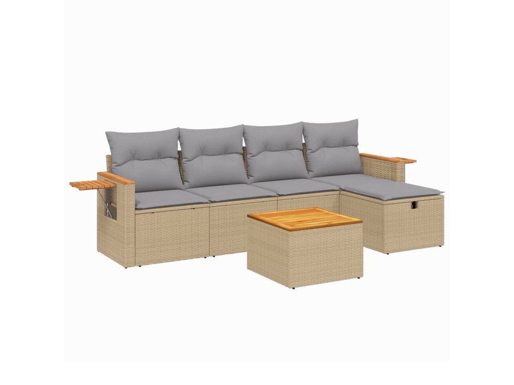 6dílná zahradní sedací souprava a podušky mix béžové polyratan 3265511
