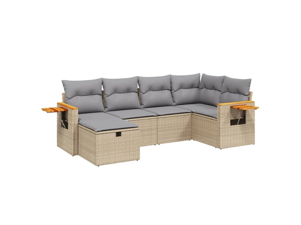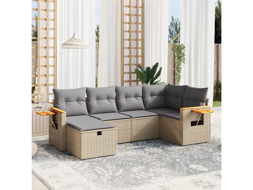 6dílná zahradní sedací souprava a podušky mix béžové polyratan 3265518