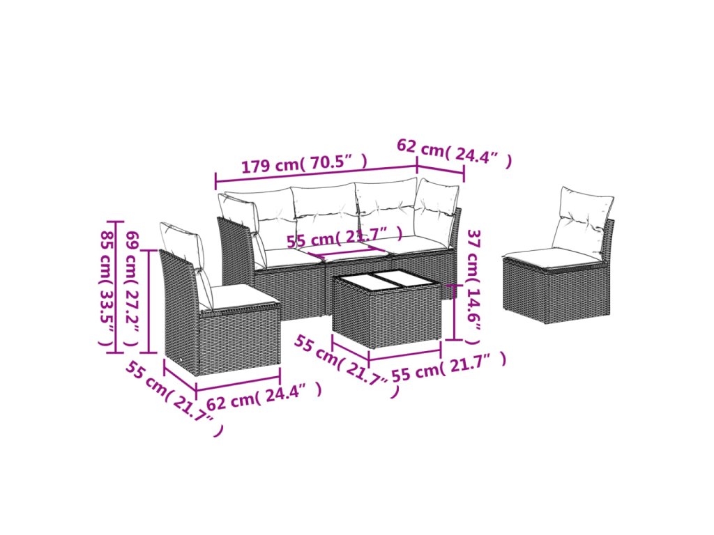 Tato zahradní sedací souprava je dokonalým doplňkem vaší zahrady, terasy nebo dvorku a poskytne vám pohodlné a příjemné místo, kde si můžete povídat s rodinou a přáteli nebo jen tak odpočívat a užívat si pobyt venku.