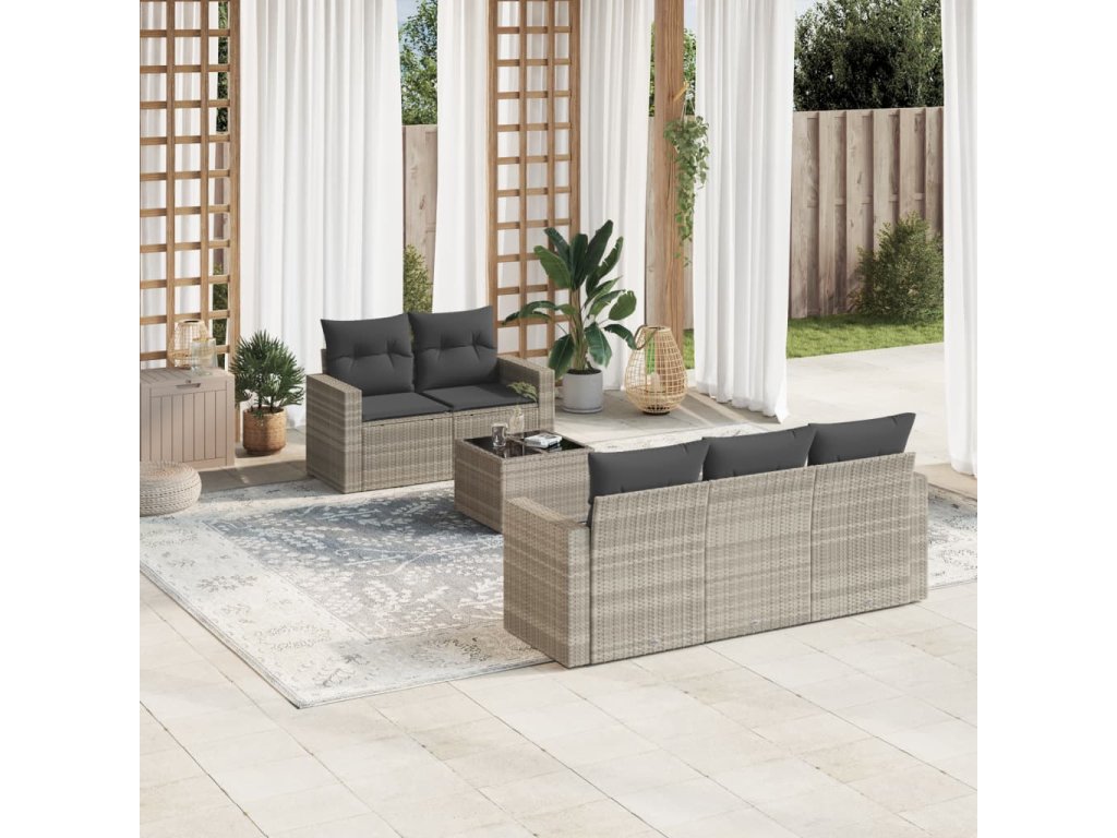 6dílná zahradní sedací souprava a podušky světle šedá polyratan 3218692