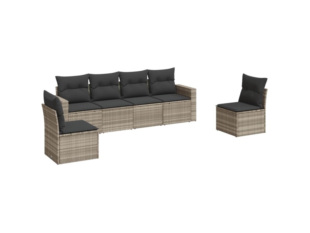 6dílná zahradní sedací souprava a podušky světle šedá polyratan 3218802