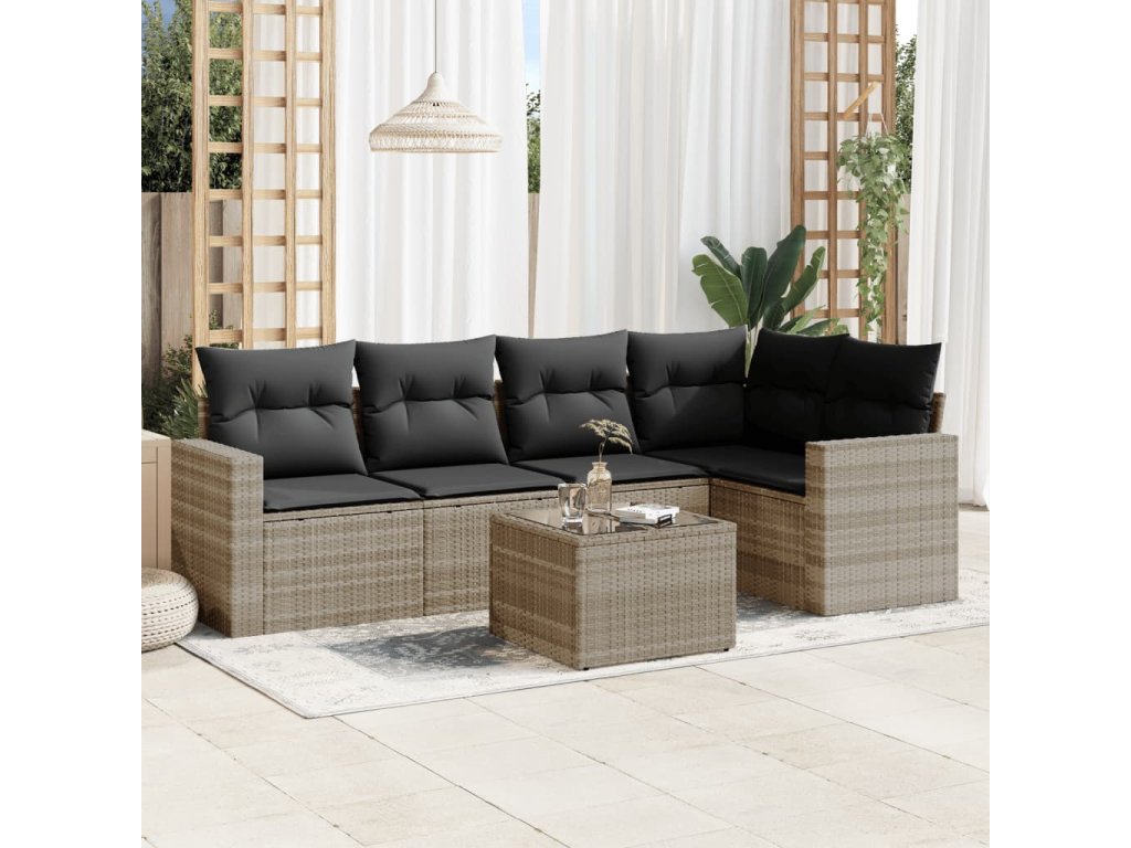 6dílná zahradní sedací souprava a podušky světle šedá polyratan 3218932