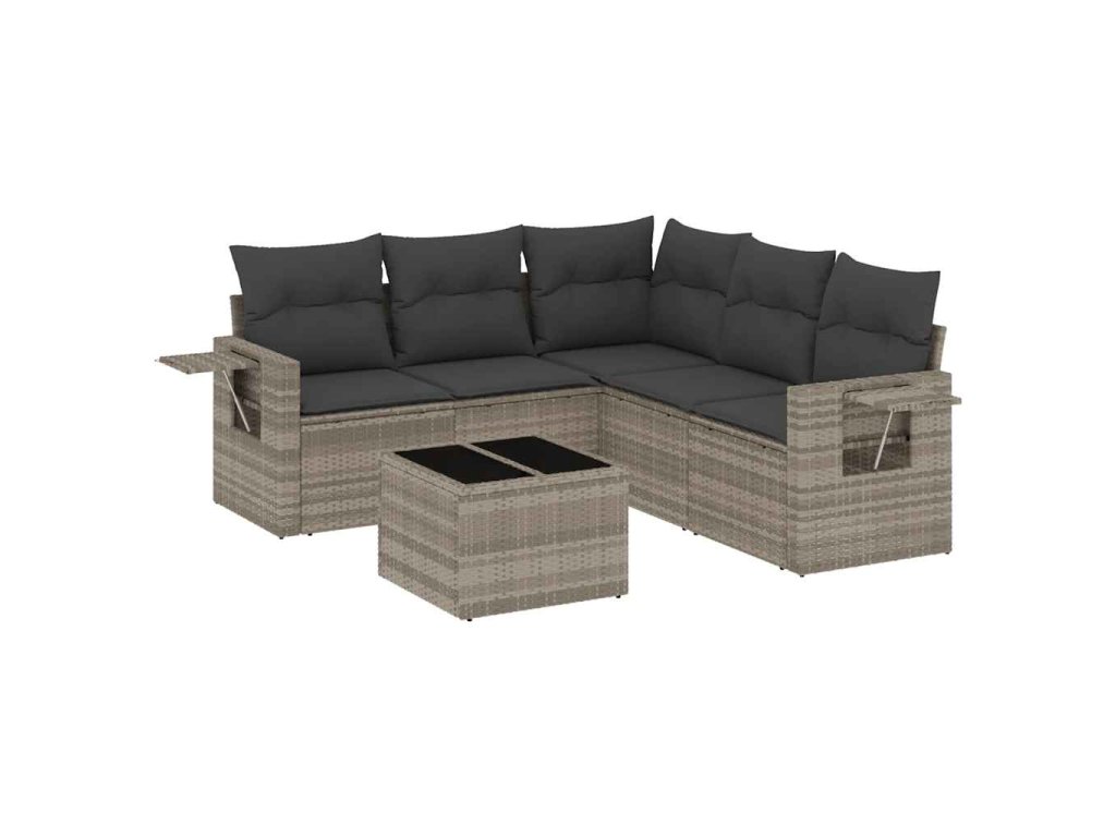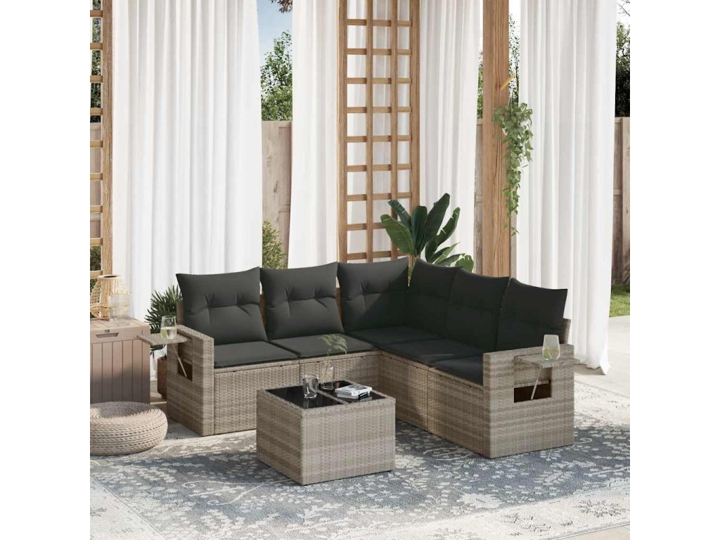 6dílná zahradní sedací souprava a podušky světle šedá polyratan 3220161