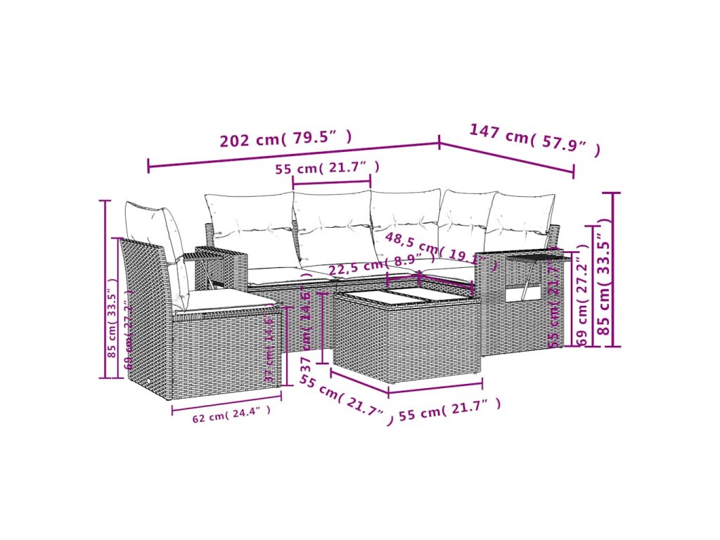 Tato zahradní sedací souprava je dokonalým doplňkem vaší zahrady, terasy nebo dvorku a poskytne vám pohodlné a příjemné místo, kde si můžete povídat s rodinou a přáteli nebo jen tak odpočívat a užívat si pobyt venku.