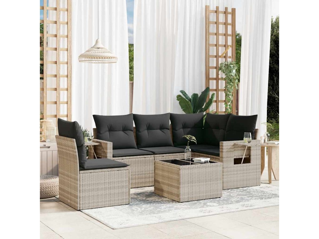 6dílná zahradní sedací souprava a podušky světle šedá polyratan 3220181