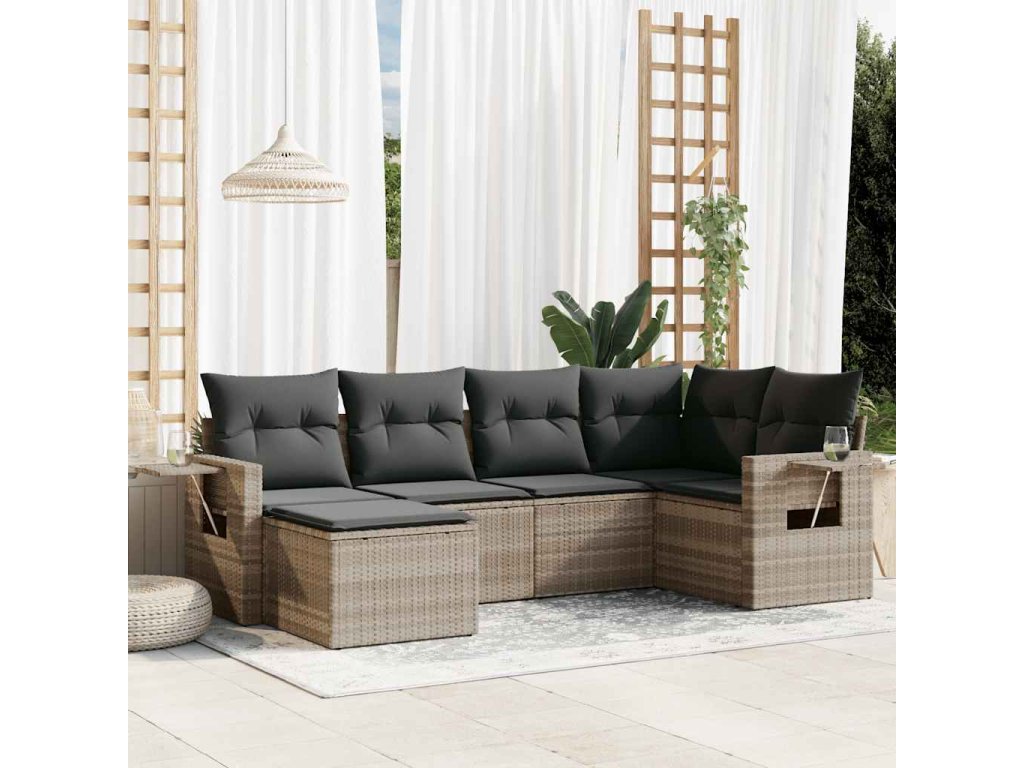 6dílná zahradní sedací souprava a podušky světle šedá polyratan 3220461