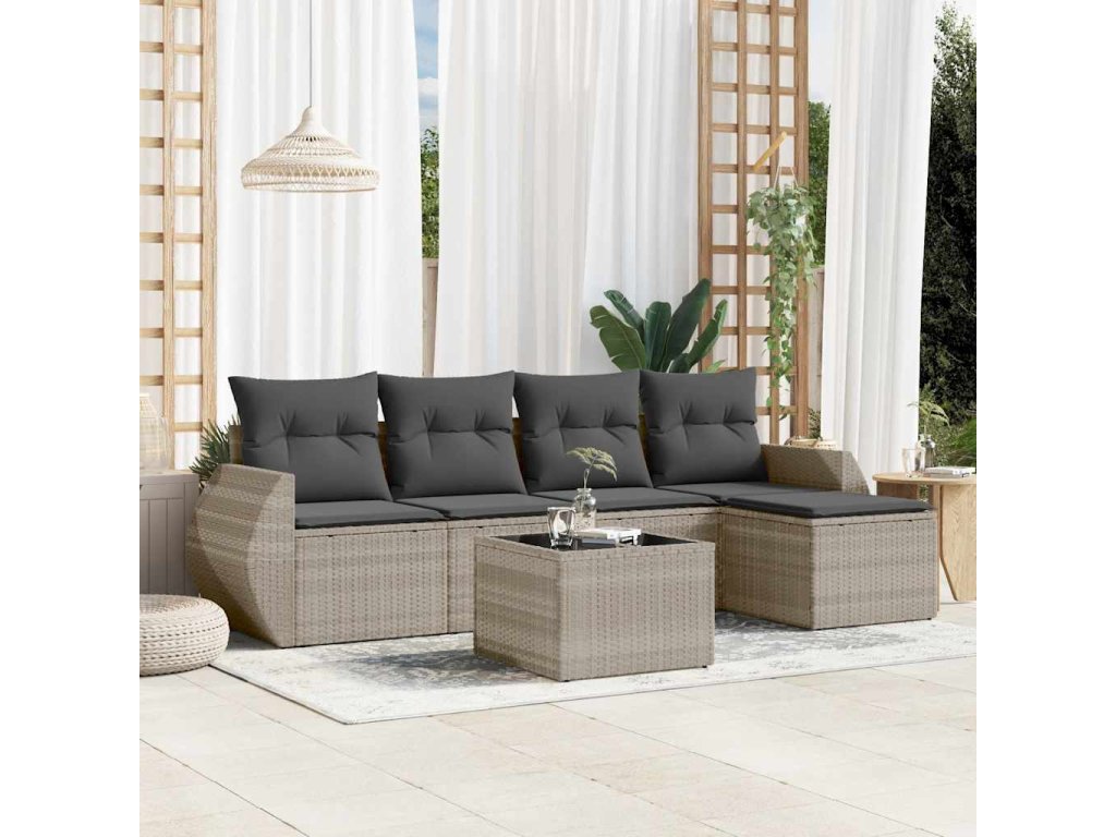 6dílná zahradní sedací souprava a podušky světle šedá polyratan 3221301