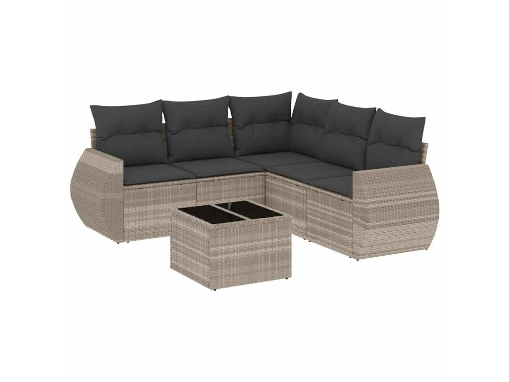 6dílná zahradní sedací souprava a podušky světle šedá polyratan 3221361